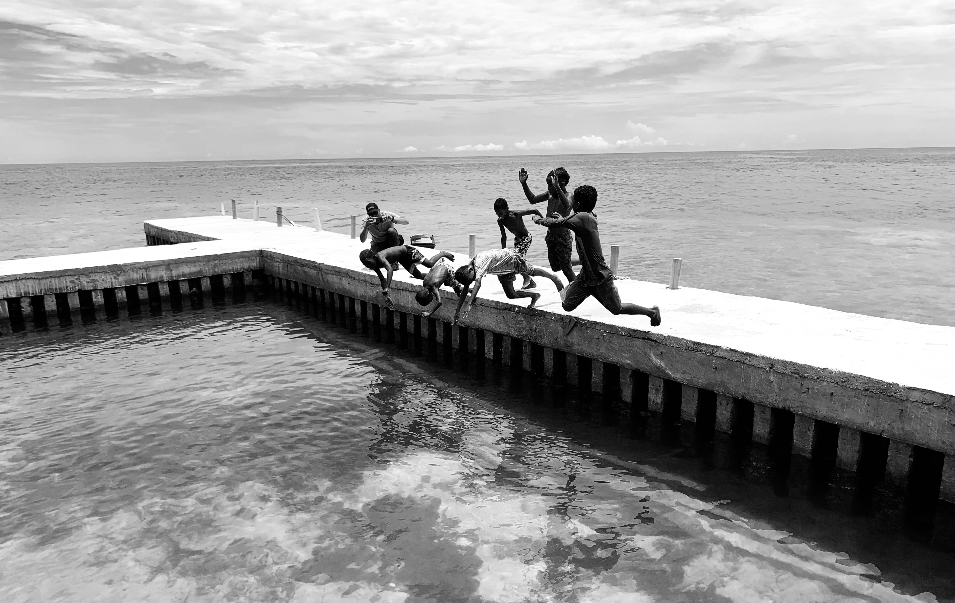 Los niños crecen entre pasadizos que parecen laberintos. Juegan fútbol con pelotas desinfladas, saltan al mar desde los muelles improvisados, inventan escondites en rincones donde casi no cabe un cuerpo. No tienen parques ni plazas de lujo, pero han aprendido a usar cada rincón como campo de juego, el mar es su patio más grande, el único espacio sin límites.