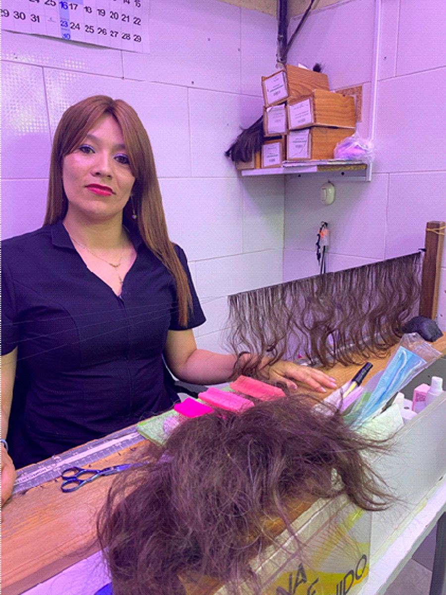 Realizar una peluca con pelo real no es trabajo sencillo. Todo se hace a mano o con máquina de tejer; no hay ningún proceso químico o industrial. Jorge Sarmiento, dueño y director de Procesos Capilares, compañía que realiza pelucas y que también aporta a la donación de estas a la asociación AMESE, considera que el trabajo que hacen es una cuestión social. Opina que, “la peluca entra a resguardar a la persona, para que no la vean como alguien que está enferma”. Agrega que este objeto, aunque pasa por la estética, es una cuestión mental que le ayuda a las pacientes sentirse mejor con su imagen personal.
