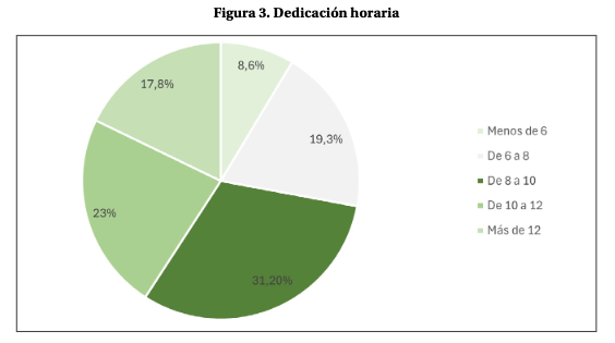La mayoría de los periodistas encuestados sobrepasan las horas permitidas en la jornada laboral en el país. Fuente: Estudio “Condiciones laborales de los periodistas en Colombia” por Diego García, Paulina Morales y Óscar Parra