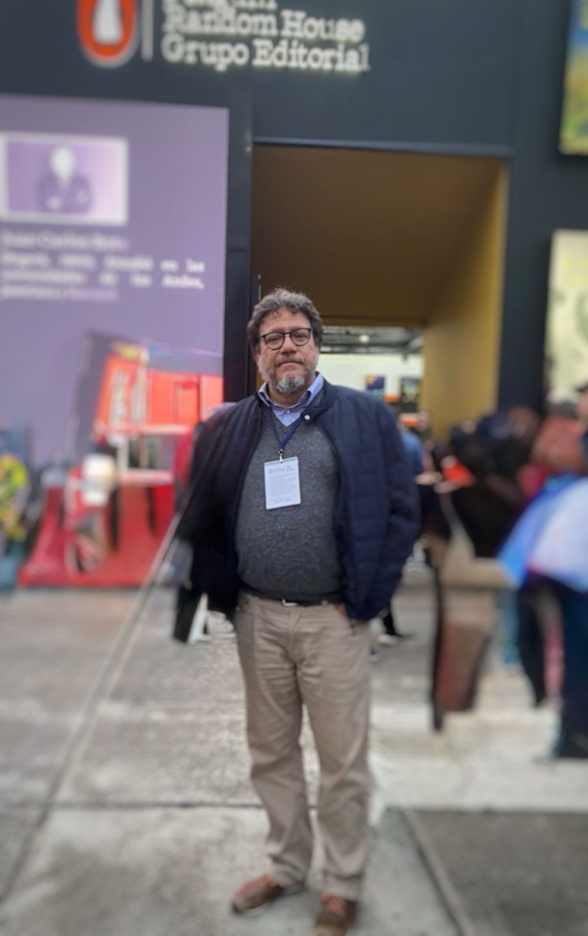 La segunda vez fue en la Feria del Libro del 2023, en Bogotá. Lo vi caminar entre la multitud, pero no me atreví a acercarme. Se veía como un señor serio, alto. Vestía una chaqueta azul, pantalones caqui y un saco gris. Su cabello, un poco desordenado. Saludarlo en ese momento era difícil: la cantidad de personas a su alrededor lo arrastraba como si fuera parte de la corriente humana.