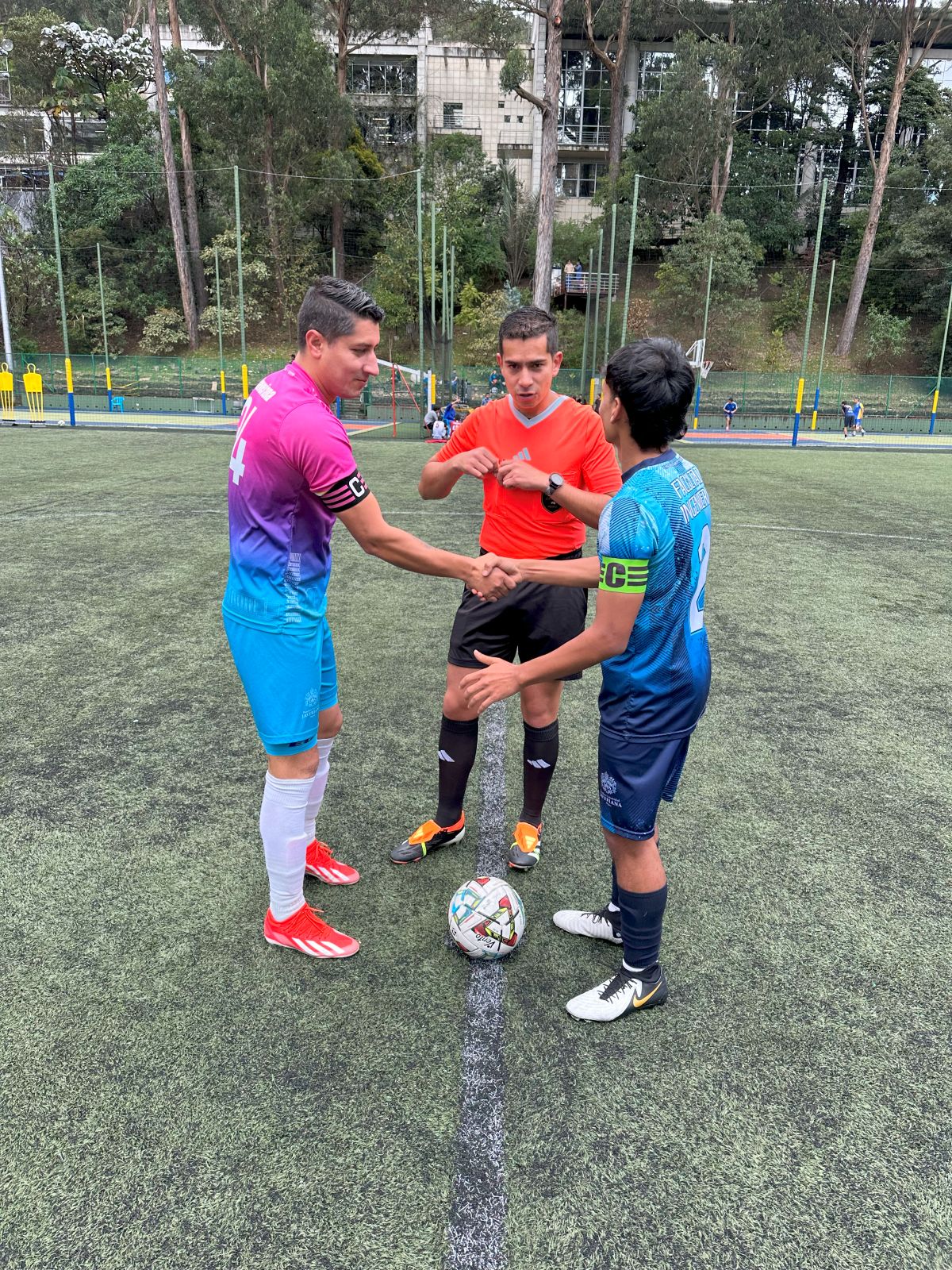 La primera mitad, aunque sin un dominador claro de la pelota, tuvo a un equipo de Funcionarios y Docentes con mucha más soltura e intensidad en los últimos tres cuartos de cancha. Al minuto trece llegó la primera aproximación luego de un error en salida de Ingeniería 1. Cinco minutos más tarde volvieron a avisar, esta vez desde un saque de banda que cayó con peligrosidad en el corazón del área. Los intentos seguían llegando; pero, en los últimos 15 minutos, empezó la reacción de los ingenieros. Hasta tres acciones fueron desperdiciadas luego de malas definiciones. Faltando solo tres minutos para la conclusión, cayó el blooper de la jornada cuando el #20 de Ingeniería erró debajo del arco y con el guardameta rival totalmente vencido.